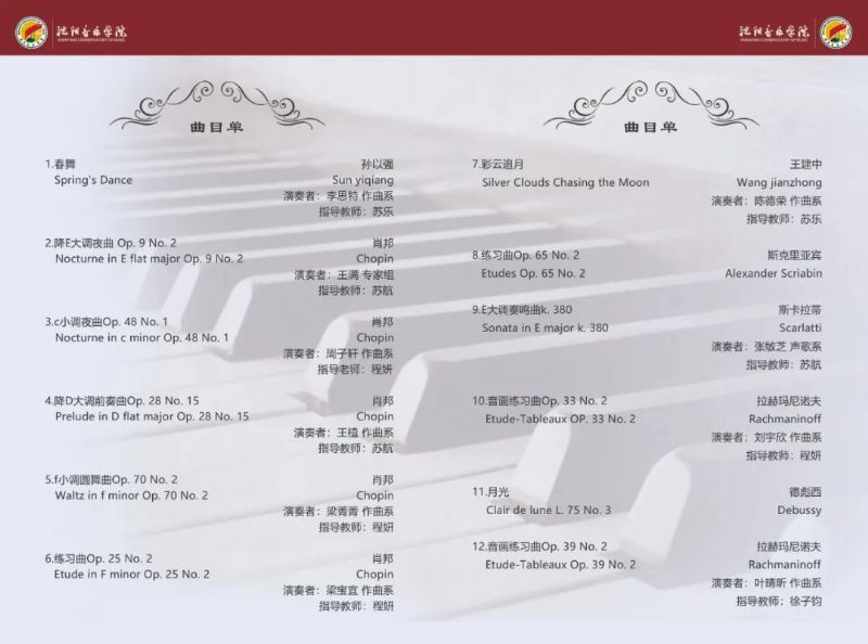音乐会地点:沈阳音乐学院第二教学楼424多功能厅