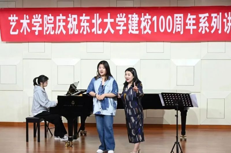 为进一步加强互学共鉴,密切校际学术交流,2023年6月7日,民族声乐系主任匡祎教授应邀于东北大学举办“我的民族声乐教学观——自然的歌唱”教学公开课暨“百年校庆大讲堂”活动。作为东北大学建校100周年学术系列活动之一,本次活动受到东北大学艺术学院的高度重视。东北大学艺术学院院长张燕楠,艺术学院音乐系主任张杨,副主任兼声乐教研室主任卜冠一,音乐系声乐教研室全体教师及本科学生出席活动,我系杨立军教授、李超老师、郭俞池老师及学生代表出席了本次活动。