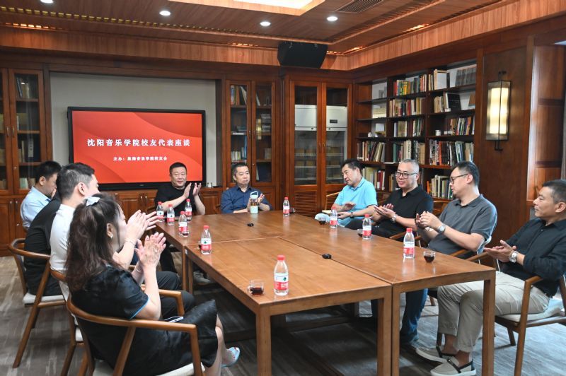 陶陌对沈阳音乐学院校友会的到来表示热烈欢迎,并介绍了与会人员及星海音乐学院概况,随后各位校友逐一发表感想,并就如何更好的构建完善校友沟通平台,加强校际之间沟通合作,整合校友资源,为进一步推动学院高质量发展,提供更好的实践就业平台进行了深入的交流探讨。张栋诚邀各位校友参加沈阳音乐学院建校85周年及沈阳音乐学院附属中等音乐学校建校70 周年校庆系列活动,并围绕推动辽宁全面振兴新突破三年行动方案向校友征集词曲作品。校友们先后表达了对母校的深厚情感以及参加校庆的意愿,并将积极响应母校号召,为校庆创作词曲作品。