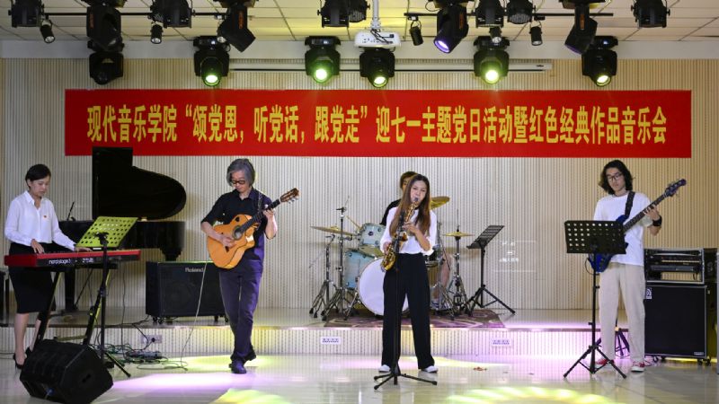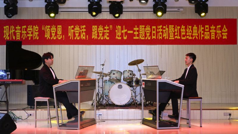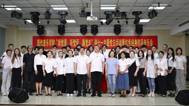 为了庆祝中国共产党成立102周年,2023年6月26日,现代音乐学院党总支举办了“颂党恩 听党话 跟党走”迎七一主题党日活动暨红色经典作品音乐会。领导班子成员、党支部书记及支部委员、党员师生代表、入党积极分子代表共计70余人参加活动。
