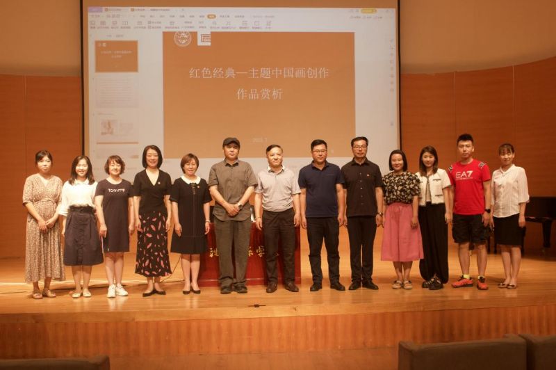 座谈会后,中国画学院主持工作副院长赵斌副教授为民族器乐系党总支和作曲系党总支师生100余人作题为《红色经典主题——中国画创作作品赏析》专题报告。他将中国共产党百年历史和红色经典国画作品相联系,以画为体,以史为魂,生动再现中国共产党100多年来波澜壮阔的光辉历程,对反映抗日战争、解放战争重大历史题材经典美术作品进行了深入浅出的分析讲解。报告会现场师生不仅受到红色经典国画艺术的视觉震撼,更感受到作品所蕴含强烈的家国情怀和伟大的民族精神,深刻感悟红色艺术作品的精神力量,使艺术创作的理想信念和价值追求更加坚定。