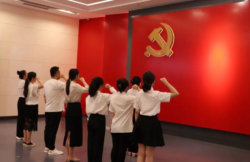在庄严的党旗前,党员重温入党誓词,过政治生日。