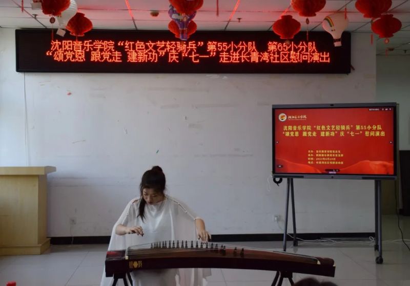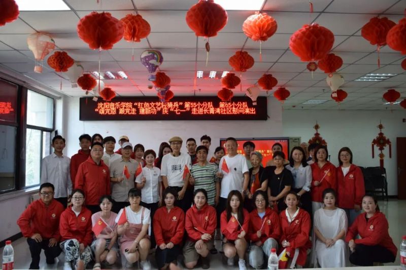 为热烈庆祝中国共产党成立102周年,秉承新时代高等艺术院校肩负的初心和使命,弘扬鲁艺精神,传承红色基因。6月29日,沈阳音乐学院红色文艺轻骑兵第54小分队(音乐教育学院民族器乐教育系党支部)、第65小分队(音乐教育学院院办教管学管联合党支部)走进五三街道长青湾社区,开展“颂党恩 跟党走 建新功”庆“七一”文艺演出活动。
