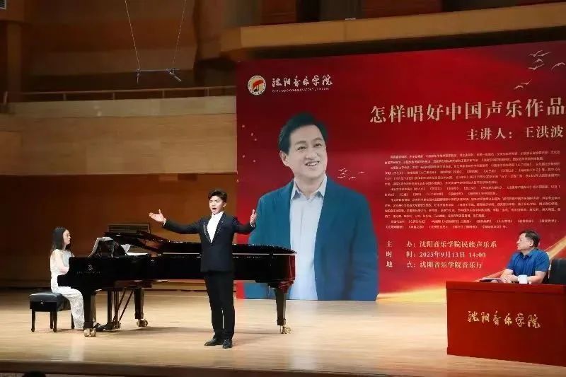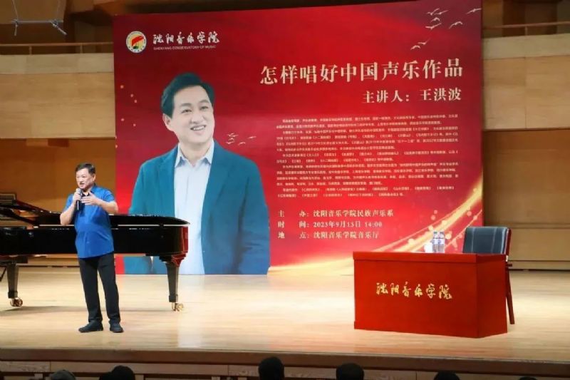为进一步提升教育教学水平,加强内涵建设,9月15日民族声乐系邀请著名男高音歌唱家、声乐教育家,中国音乐学院声歌系教授、博士生导师王洪波举办《怎样唱好中国声乐作品》学术讲座暨教学公开课,讲座在我院音乐厅举办,民族声乐系全体师生参加活动,讲座由民族声乐系副主任沈德鹏主持。
