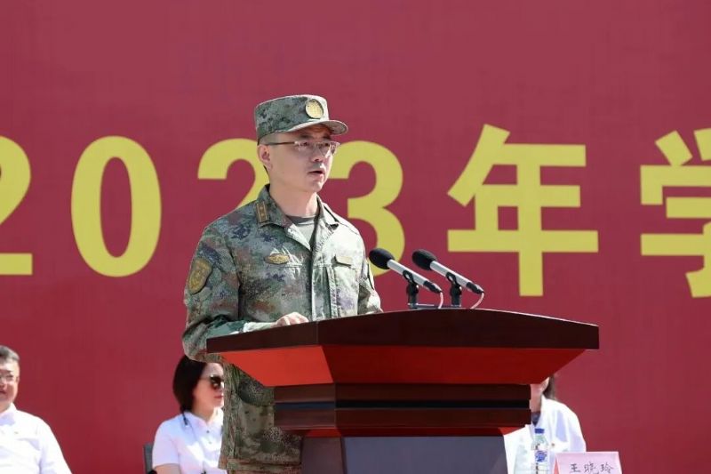 庞渤在动员大会上授旗并讲话。他首先代表全体教职员工对2023级新同学成功考入沈阳音乐学院表示热烈的祝贺。同时,向承训部队领导和教官们表示衷心的感谢。庞渤表示,军训作为大学入学教育的“第一课”和“必修课”,不仅是培养社会主义建设者和接班人的战略工程,更是提高大学生综合素质的基础工程,对于培养学生爱国主义精神、集体主义精神、艰苦奋斗精神,促进学生全面发展,有着极其重要的意义。在开训之际,他向全体参训学生提出希望。一是要传承红色基因,端正军训态度。希望同学们积极践行“紧张、严肃、刻苦、虚心”的校训精神,以饱满的精神和崭新的风貌全身心地投入到军训之中。二是要树立国防观念,明确军训意义。希望同学们身怀理想抱负,肩负报国责任,不断增强全民国防观念,强化爱国强军意识和责任担当。三是要勇担复兴大任,保证军训质量。希望同学们认真学习基本的军事技能和军事知识,遵守纪律,听从指挥,严于律己,不怕吃苦,高质量完成军训任务。最后,他勉励同学们通过此次军训,塑造钢铁意志,练就不屈精神,养成良好作风,以“青春之我”践行强国之志,以“奋斗之我”勇担时代使命,争做可堪大用、能担重任的栋梁之才。