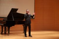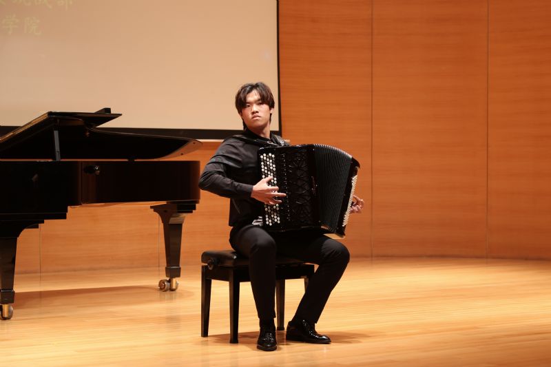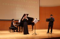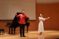 港澳台侨和归国留学人员代表人士与我院侨联成员及学生代表以器乐演奏、声乐演唱等艺术形式,为观众献上了精彩纷呈的节目。演出在女声独唱《我的祖国》中拉开帷幕,手风琴独奏《绝境》委婉动听,展现了音乐的律动之美;男声独唱《我爱这土地》声情并茂,表达了对祖国的眷恋;钢琴独奏《皮黄》将京剧色彩和韵味腔调融入西方现代作曲技法,让钢琴具有别样的音乐表现力;师生二重唱《万疆》蓬勃大气,体现了中华儿女的爱国情怀;单簧管、长笛、钢琴协奏《塔兰泰拉舞曲》节奏明快,让观众领略了诗意形象化的演奏技巧;男女声二重唱《共筑中国梦》旋律激昂,展示了中国人民满怀豪情为实现中国梦努力向前的精神面貌;男声独唱《我爱你中国》感情真挚,诠释了对祖国的浓浓爱意;男声独唱《沈阳啊沈阳,我的故乡》,表达了对家乡沈阳的无限热爱。音乐会在合唱《我和我的祖国》的优美旋律中落下帷幕。音乐会由我院戏剧影视学院教师王丹主持。