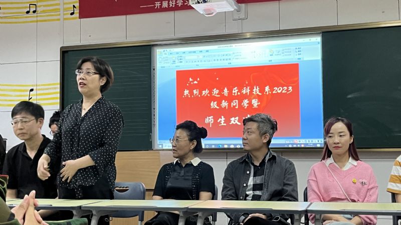 9月21日,音乐科技系在长青校区第二教学楼308,召开了2023级新生见面会暨师生双选会。音乐科技系领导班子、全体教师和58名新生参加了会议。会议由直属党支部副书记郎彩飞主持。