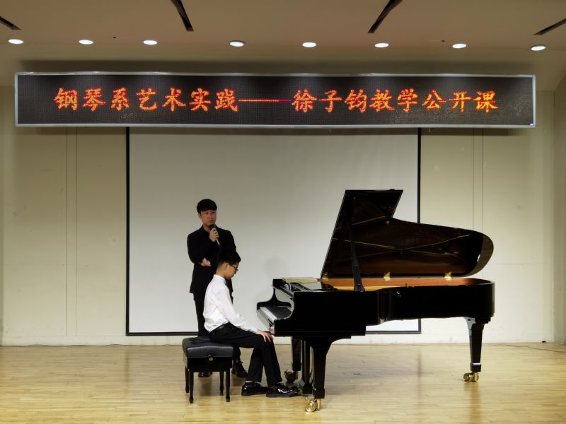 9月26日上午9时50分,本学年度第一学期艺术实践周的第二场教学公开课由钢琴系青年教师徐子钧博士主讲,钢琴系主任李哲教授主持。本次公开课在第二教学楼424多功能厅举行,钢琴系师生200余人出席参加了此次活动。