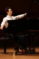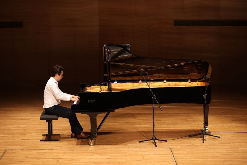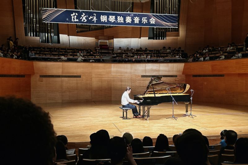 随后,他为听众带来两首古典钢琴奏鸣曲,一首莫扎特的《C大调钢琴奏鸣曲K.330》和贝多芬的《c小调钢琴奏鸣曲‘悲怆’Op.13》,他的双手灵活地穿梭于琴键之间,音符在空中碰撞,让听众领略了德奥古典音乐的精神性与戏剧性。