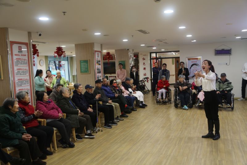 为深入推进学习贯彻习近平新时代中国特色社会主义思想主题教育,贯彻落实习近平总书记关于文艺工作的重要论述,弘扬“敬老、爱老、助老”的传统美德,11月8日,音乐科技系直属党支部开展了“党建引领,文艺为民”红色文艺轻骑兵走进怡园长者照料中心主题党日活动。音乐科技系班子成员、怡园长者照料中心的工作人员,以及音乐科技系党员、入党积极分子,部分团员参加了此次活动。