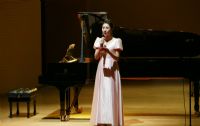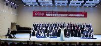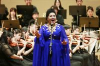 女声独唱《中国新世纪》。演唱学科主任王燕在管弦乐团气势恢弘的伴奏下,以其高亢嘹亮、感人至深的歌声,赞颂了中国人民在中国共产党的领导下,自力更生、锐意进取,用聪明才智、勤劳双手描绘的一幅又一副壮美画面。