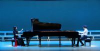 双钢琴《叙事曲》,由张朝先生根据首任院长李劫夫创作的歌曲《歌唱二小放牛郎》改编成钢琴叙事曲,刘旭娜将其改编为双钢琴演奏形式,通过两架钢琴全新诠释。作品气势磅礴,高低音交相辉映,极富艺术感染力,再现了聪明、机智的小八路与敌人周旋及英勇就义的感人场面。