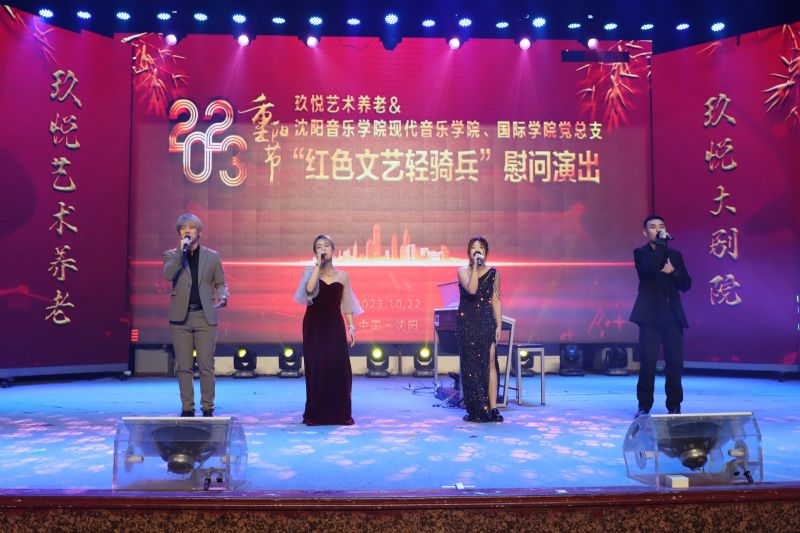 为巩固学习贯彻习近平新时代中国特色社会主义思想主题教育成果,引导广大党员在推动学院高质量发展中主动作为、担当有为,2023年10月22日重阳节前夕,沈阳音乐学院红色文艺轻骑兵第67小分队(现代音乐学院、国际学院党总支)走进玖悦艺术养老院开展慰问演出,践行文艺“为人民服务、为社会主义服务”的初心使命,弘扬鲁艺精神,传承红色基因。