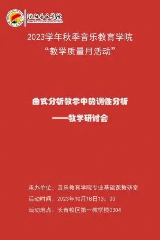 •      音乐教育学院专业基础课教研室于2023年10月18日,在长青校区开展了作曲技术理论与合唱指挥教研组 “曲式分析教学中的调性分析”教学研讨会活动。