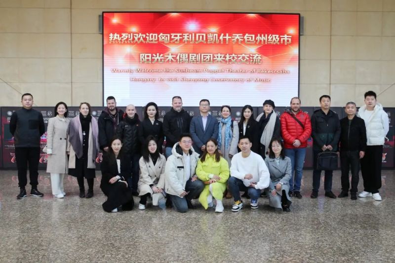 11月3日,匈牙利阳光木偶剧团一行七人来访我院,成员包括:团长佐尔坦·伦凯菲(Zoltan Lenkefi)、技术总监达尔马·提卡·伦凯菲(Dalma Réka Lenkefi)、营销总监安娜·瓦尔加(Anna Varga)、艺术总监埃尔兹贝特·乔尔坦(Erzsébet Csortán)、舞蹈演员约翰·帕特卡(János Patkás)、灯光师琼戈尔·巴拉兹斯(Csongor Balázs)、音响师久洛·比罗(Gyula Biró)。来访期间,匈牙利阳光木偶剧团在我院舞蹈学院进行了交流演出和座谈会等系列活动,沈阳市人民对外友好协会副秘书长刘振宁、国际交流部部长祝刚,我院国际交流合作处处长梁风雁,舞蹈学院(舞蹈学校)院(校)长王海峰、副院(校)长张倩及舞蹈学院(舞蹈学校)、芭蕾舞学科主任王羽佳、民间舞学科主任金春昌、国标舞学科主任李文旭、中国舞学科副主任王海军、国际交流合作处留学生科科长张煜、国际交流科副科长郭琳参加系列活动。