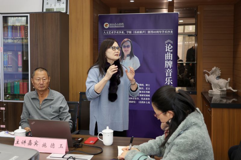 活动中,施德玉与师生们分享了她本人关于我国传统音乐的重要形式之一——曲牌音乐的研究与思考。她以语言与音乐的关系为切入点,从格律、音韵入手,回溯了曲牌音乐的形成与发展,阐述了曲牌音乐的内在结构形式、填词与制曲规则以及联曲规律等,总结了曲牌音乐的一般特征和相关剧种的创作方式,并提出曲牌音乐发展的多样性和研究视角的多元性。最后,施德玉指出,在中华民族浩瀚的艺术海洋中,曲牌音乐虽只是其中一部分,但其经过历代名家的不断雕琢形成了缜密的结构,留下了鲜明的文化印记,是具有重要价值的民族文化瑰宝。