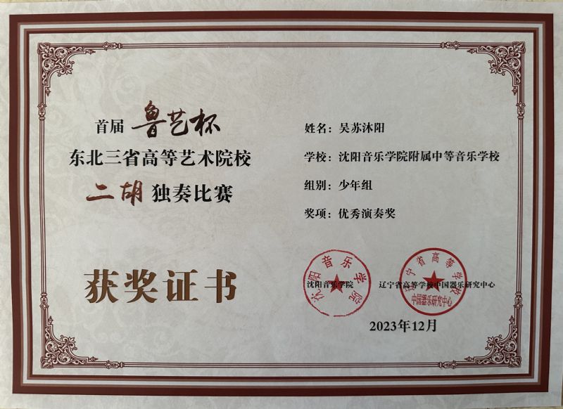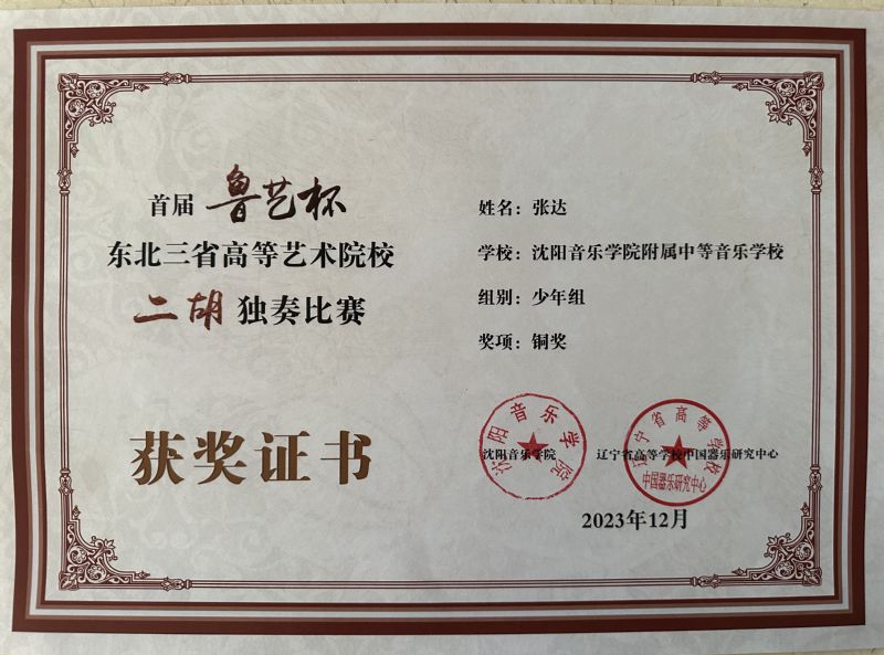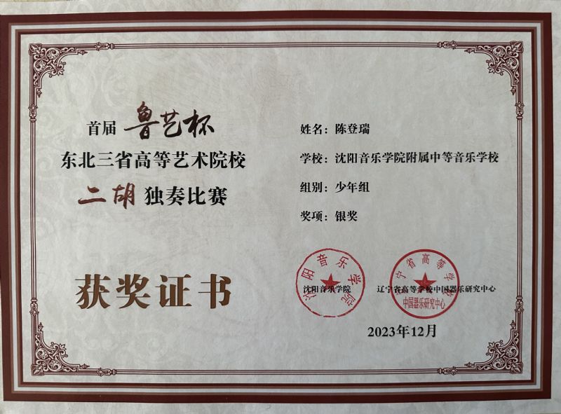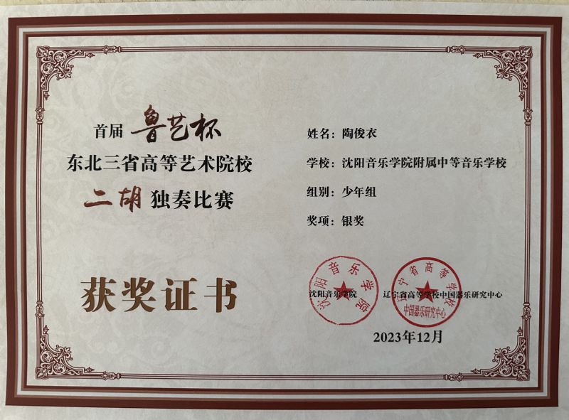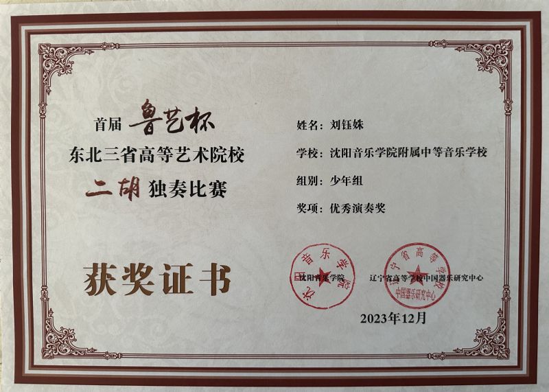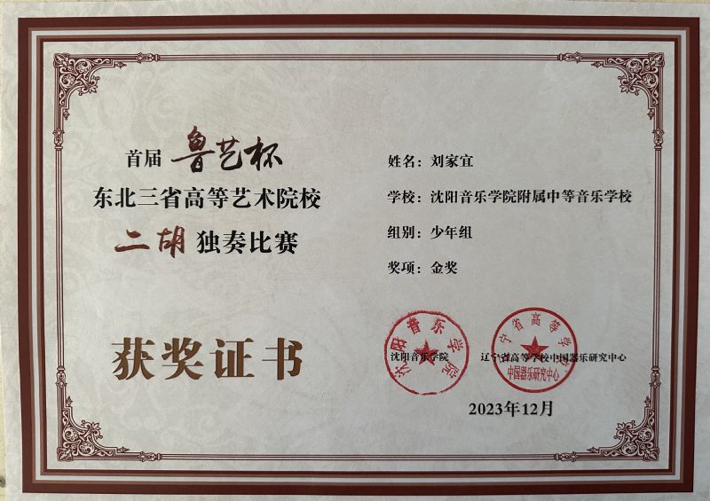 12月17日,由沈阳音乐学院与辽宁省高等学校中国器乐研究中心共同主办的首届鲁艺杯东北三省高等艺术院校二胡独奏比赛圆满落幕。当晚,颁奖独奏音乐会在沈阳音乐学院音乐厅隆重举行,为历时3天的比赛画上圆满句号。