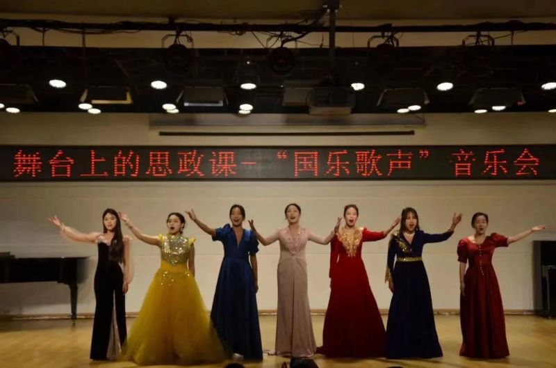 •      “飞雪迎春到,弦歌颂党恩”,为了深入贯彻落实习近平总书记关于教育的重要论述,牢牢坚持为党育人、为国育才,充分认识思想政治教育一体化的重要性,民族声乐教学系与民族器乐教育系共同举办的“舞台上的思政课--国乐歌声”音乐会于11月29日在长青校区第二教学楼演奏厅举行。