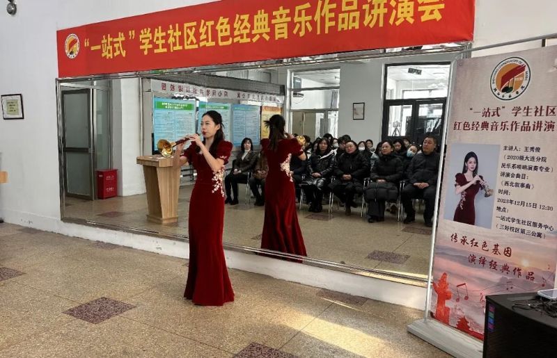 12月15日,第十九期“一站式”学生社区红色经典音乐作品讲演会在三好校区“一站式”学生服务中心举行。学生处、大连分院相关负责同志与40余名学生代表参加讲演会。讲演会由大连分院辅导员王金钰主持。