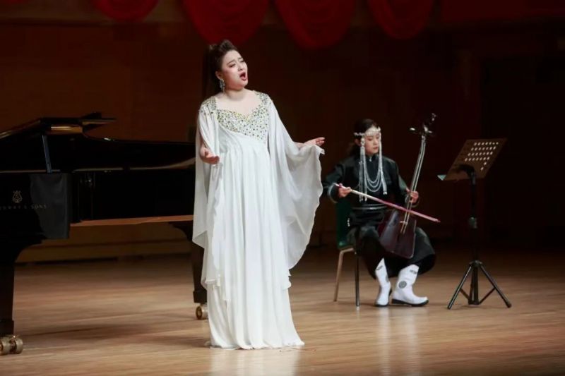 音乐会以拉赫玛尼诺夫练声曲以及施特劳斯的《万灵节》拉开了序幕,王璐瑶以扎实的专业能力以及巧妙的处理使得现场掌声雷动。接下来演唱的歌曲《虞美人·听雨》,是一首韵味悠长的中国艺术歌曲,说尽了人间的相思之情,道尽了人生的沧桑与无常。歌曲《莫尼山》在马头琴伴奏的加持下,使得莫尼山巍峨,高如云端的身躯出现在听众眼前,最后在《青春舞曲》、《边境小鸟》欢快的节奏与旋律及现场观众的掌声中圆满结束。