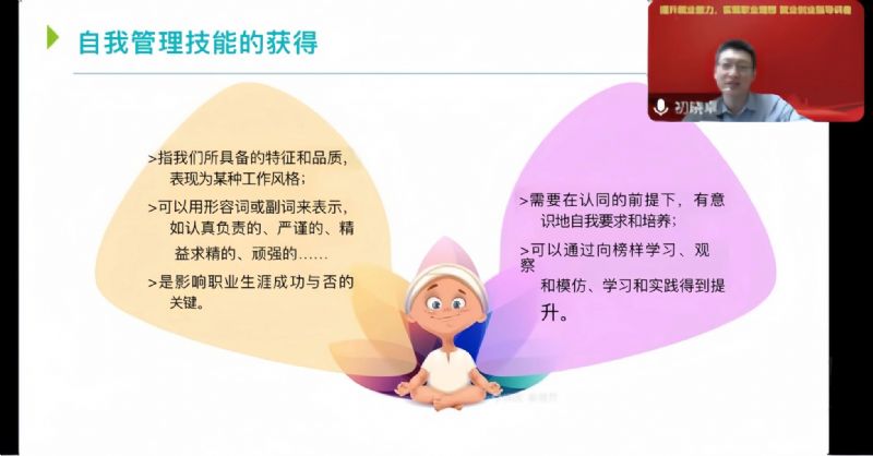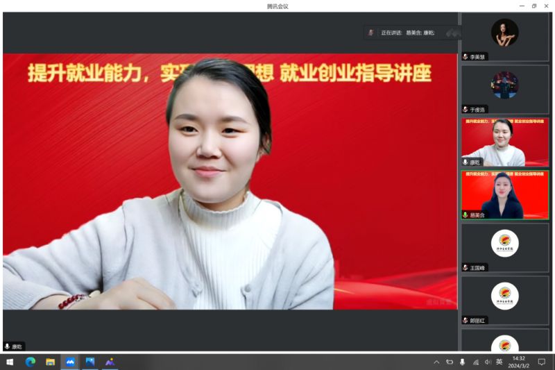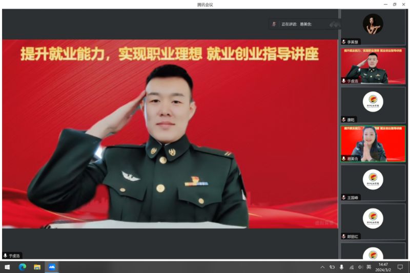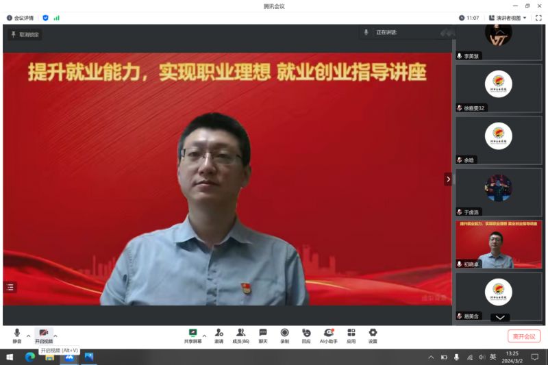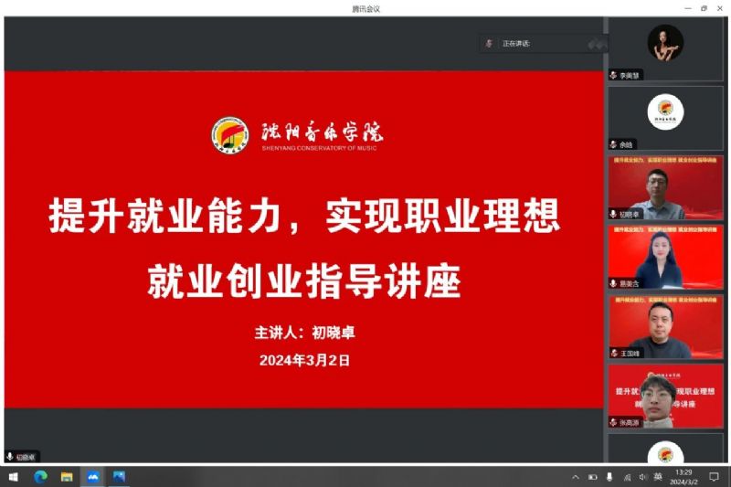 为贯彻落实教育部和省教育厅关于开展寒假促就业“暖心行动”通知的相关要求,我系按照工作要求持续开展“暖心行动”。3月2日,民族声乐系邀请学院公共基础部创新创业教研室(就业指导教研室)主任、副教授初晓卓做题为“提升就业能力,实现职业理想”就业创业指导讲座,线上讲授就业创业相关知识,为毕业生做就业创业相关指导。系党总支书记郎丽红、副书记王春生出席。讲座由辅导员易美含主持