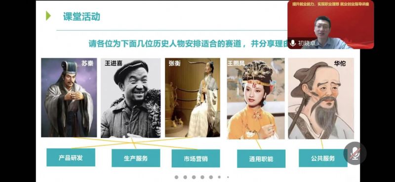 讲座中,初晓卓分别以“成长行动 实现职业理想”、“就业赛道 聚焦雇主需求”、“简历撰写 撬动雇主期待”为题,多层次、宽领域、全方位展开指导。他通过生动形象、地讲解和丰富多样的就业创业实例,紧密联系行业发展,深入剖析专业特征,进而帮助学生们理解所讲授的“八个职能”“五个赛道”的更多发展可能。