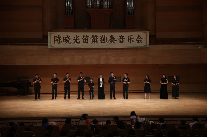 另外还演奏了极具北方特点的《梅花雪花》、《草原牧笛》、《阳关三叠》、《阿里山,你可听见我的笛声》,音乐会在热烈火爆的《欢庆》声中结束。在观众的一再要求下,陈晓光带领她的学生们返场了赵越超先生的代表作《麦收时节》。