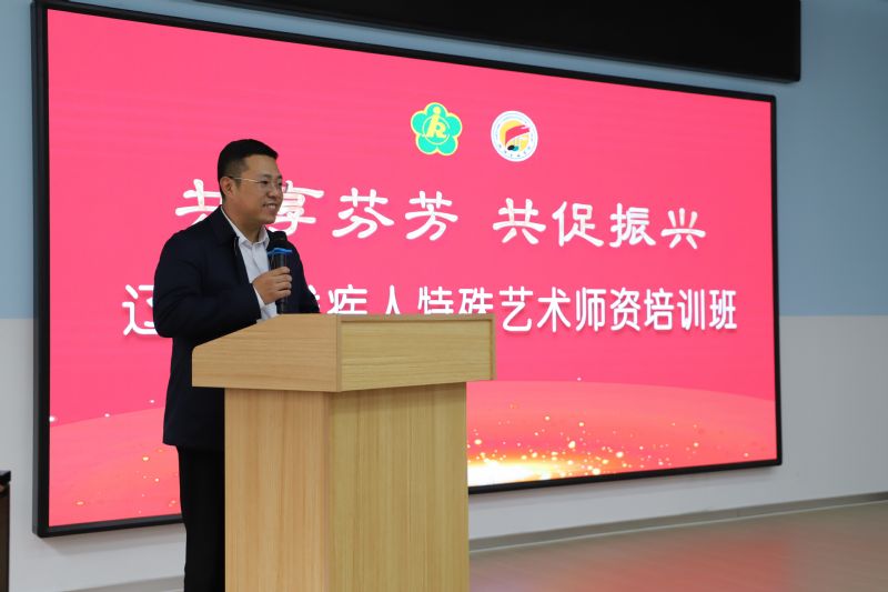 付晓东强调,在沈阳音乐学院迎来建校85周年之际,我们也迎来了省残联携手我院举办的“共享芬芳 共促振兴”辽宁省残疾人特殊艺术师资培训的隆重开班。残疾人事业是中国特色社会主义事业的重要组成部分,关心关爱残疾人,是社会文明进步的重要标志。残疾人事业需要社会各界的广泛参与和积极贡献,而作为具有红色基因和光荣革命传统的沈阳音乐学院,一直对残疾人事业极为重视。沈阳音乐学院将继续发挥教育人才优势,共同打造示范型特殊艺术师资音乐人才培养基地,彰显沈阳音乐学院“植根民族,融入时代,突出特色,服务社会”的办学理念,继承和弘扬鲁艺光荣传统,更好地促进辽宁省特殊艺术教育向高水平、专业化发展,让更多胸怀天下冷暖,有志于残疾人事业的艺术教师,在人文关怀、艺术素养和专业技能上取得突破性成效。