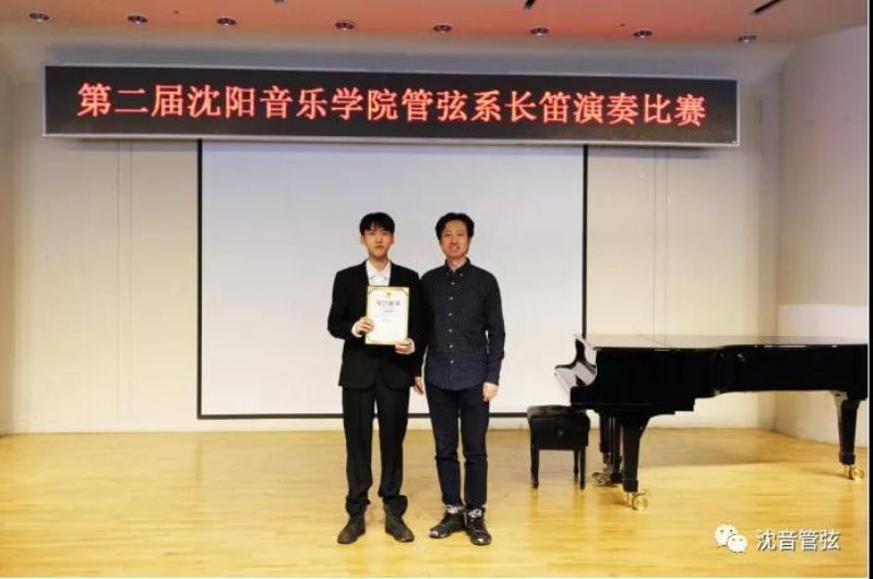 沈阳音乐学院音乐教育学院长笛教师孙晓琳为获得第六名选手 2018级学生马克颁发获奖证书