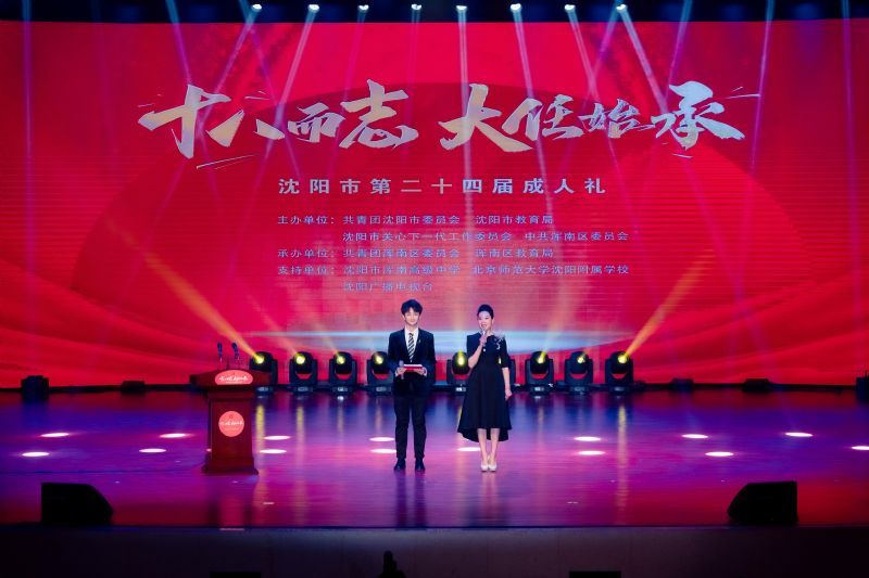 4月18日,由共青团沈阳市委员会、中共沈阳市委宣传部、沈阳市教育局、中共浑南区委员会共同主办的“十八而志,大任始承”让青春闪耀未来沈阳市第二十四届成人礼活动在沈阳市浑南高级中学礼堂举行。市委领导出席活动并寄语,市教育局、团市委相关领导,浑南区主要领导,各区、县(市)团委书记,驻沈高校和部分中学团委书记以及全市18周岁青年学生代表等共计500余人到场观礼,典礼现场由云盛京全程直播。我院团委、艺术实践教学中心组织现代音乐学院、戏剧影视学院学生携精彩节目闪亮成人礼活动现场,戏剧影视学院学生范凯鑫担任本次活动主持人。