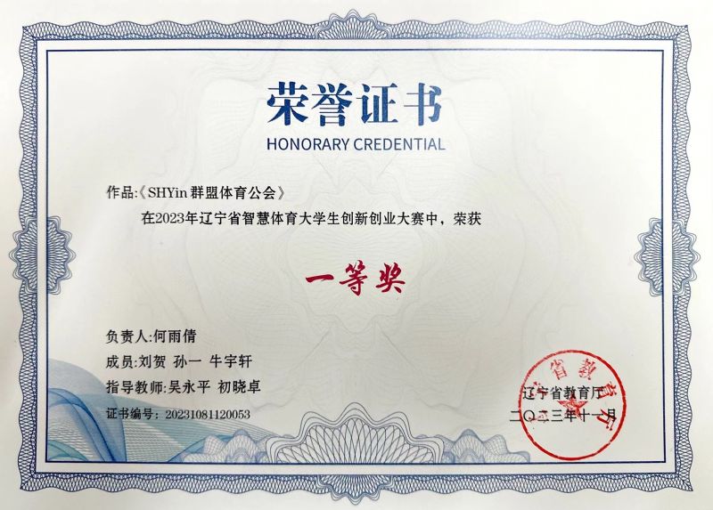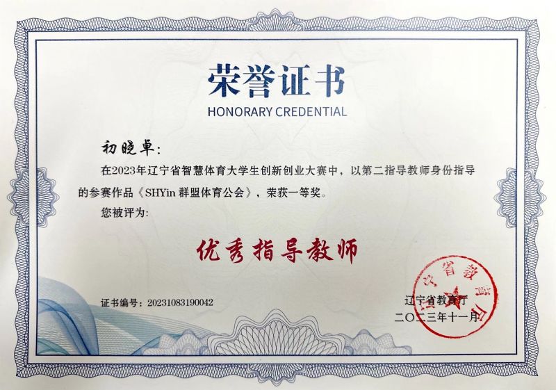 年辽宁省智慧体育大学生创新创业大赛中,吴永平、初晓卓联合指导的作品,荣获省级一等奖。