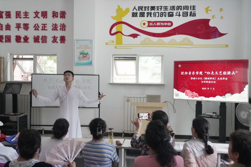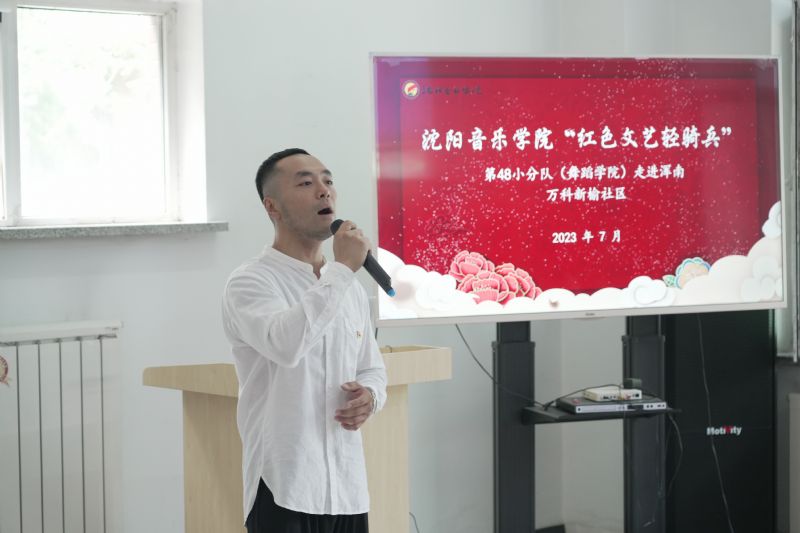7月4日,“红色文艺轻骑兵”第48小分队在舞蹈学院党总支第一党支部书记唐铭择的带领下,走进浑南区万科新榆社区开展文艺演出和艺术指导,开展了系列文化志愿服务活动。