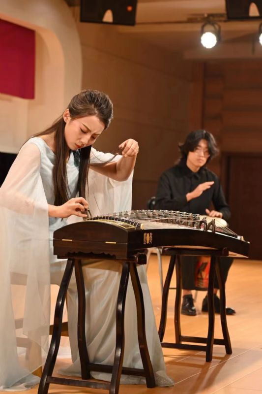 曹欣彤同学以多年的学习成长经历、艺术感悟,将乐者心境、琴艺空间、舞台表达等方面结合艺术实践所获得的感性经验和理性梳理融入到今天所演奏的乐曲当中,共同聆听古筝带给我们的心灵洗涤。