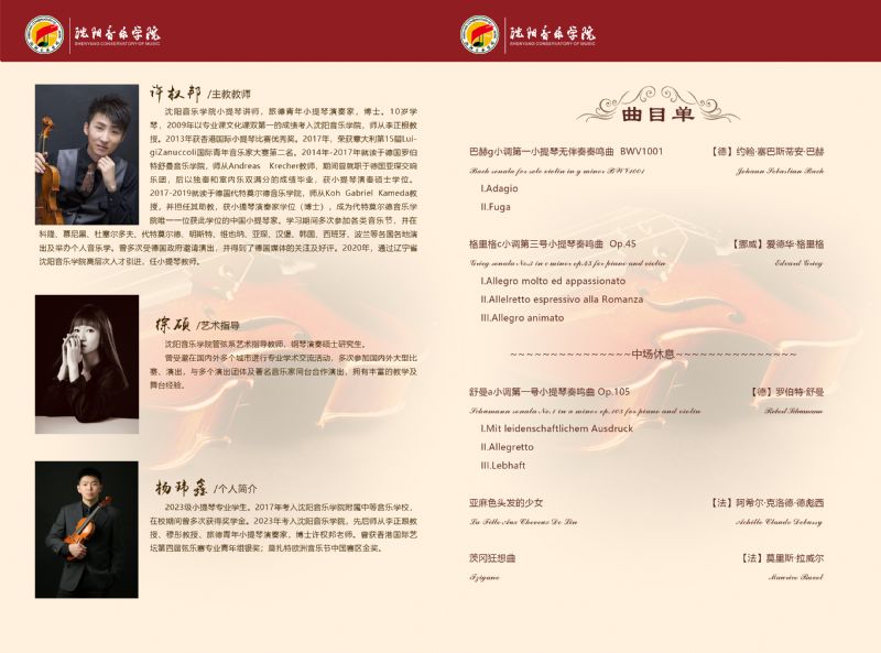地点:沈阳音乐学院室内乐演奏厅(华彩厅)