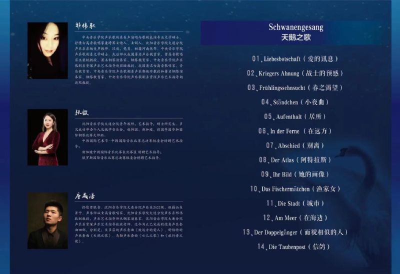• 名称:唐成浩——舒伯特声乐套曲《天鹅之歌》演唱音乐会