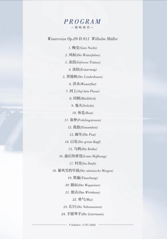名称:许皓玮独唱音乐会——舒伯特声乐套曲《冬之旅》