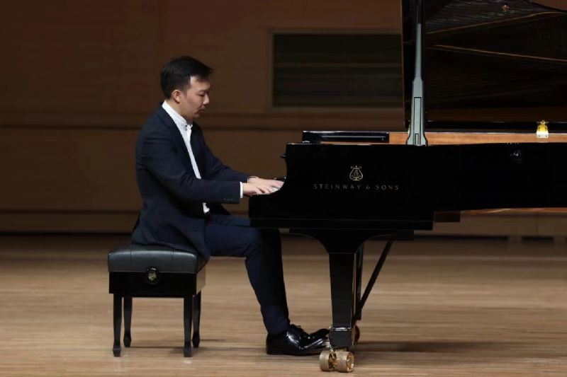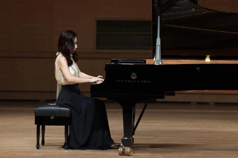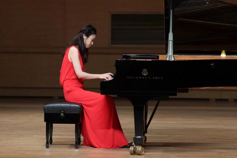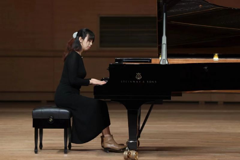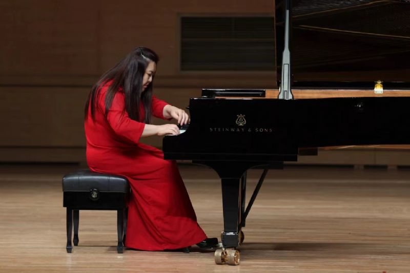 旅俄博士印慧媛演奏了巴拉基列夫的《东方幻想曲--伊斯拉美》,这是一首技巧性很高的钢琴作品,连续八度、快速远距离大跳、快速同音重复以及复调等极难演奏技巧被娴熟地展现,把高加索民族舞曲的热情奔放体现得淋漓尽致。旅英博士徐子钧演奏了法泽尔·赛依的《黑色地球》,浓郁的土耳其曲风由远及近,让人沉浸其中,不仅感受到黑海山脉的自然风情,还有东西方文化、传统与现代的完美交融。副教授苏乐演奏了由李劫夫歌曲《歌唱二小放牛郎》改编的钢琴作品《叙事曲》,熟悉的旋律一经响起,便把人重新带回到抗战硝烟烽火中,带回到了鲁艺前辈以音乐作“武器”,高扬爱国旗帜,吹响民族解放号角的艰苦岁月里。