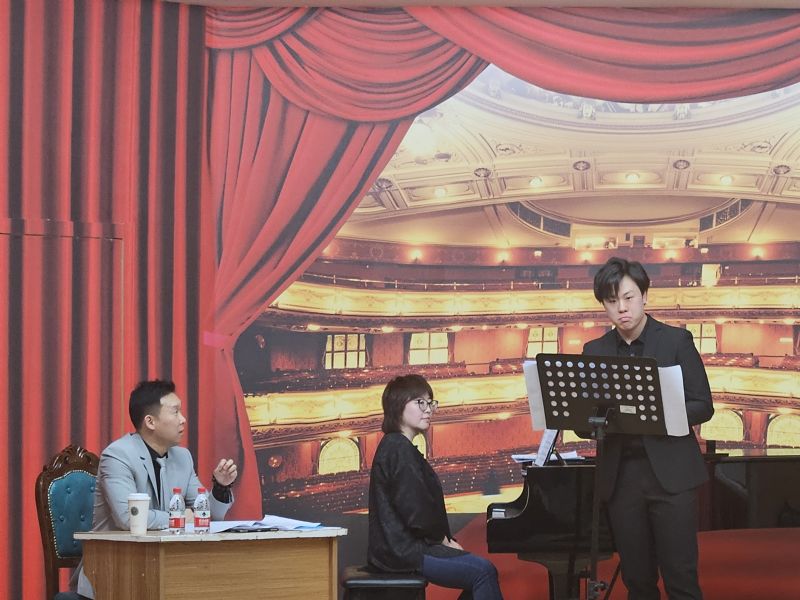 •             4月10日,我系邀请旅法男高音歌唱家,法国大巴黎特朗布莱公立音乐学院院长,新加坡首都艺术学院声乐系主任,巴黎SCHOLA CANTORUM高等音乐学院教授,法国金欧文化艺术交流协会主席陈昱来我系举办声乐大师课。大师课由系主任张策主持。