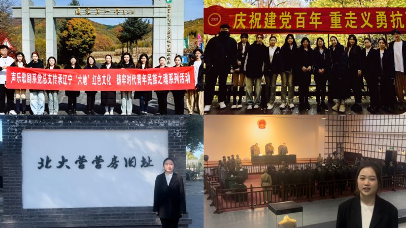 声乐歌剧系党总支带领师生党员群众走进“九·一八纪念馆”、北大营营房旧址、本溪老秃顶抗日根据地等地,通过声歌“青年说”宣讲团宣讲、抗日歌曲联唱等形式,深刻了解辽东血盟救国军成立前后的历史故事及东北抗日义勇军艰苦卓绝的奋斗历程,领悟东北抗联精神,感悟信仰的力量。