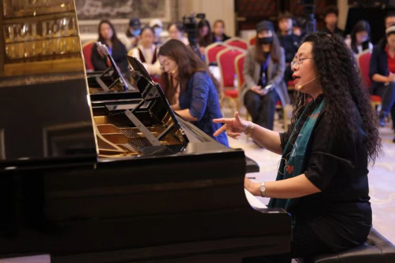 钢琴系2021级本科学生毛羽萱作为学生代表,在大师课上接受了英国圣三一拉邦音乐舞蹈学院院长Aleksander Szram的指导,Aleksander Szram院长对毛羽萱的演奏水平给予了充分肯定,并从曲目结构分析等方面进行了详细的讲解,对演奏者能更深入理解音乐的内涵有着极大的帮助。