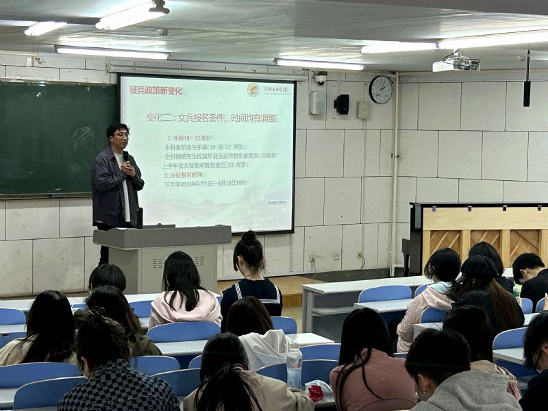 本次活动赵晓晨老师就以下三方面内容进行详细讲解。一是征兵政策的新变化、报名条件及流程。二是介绍了现阶段大学生入伍优待政策、服兵役期间及退役后的相关优抚政策。三是以我院往年征兵案例为落脚点,围绕我系学生的专业优势和未来发展空间进行了深入说明,并给予建设性意见,鼓励同学们积极投身军营。