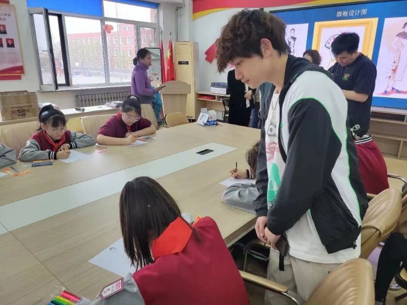 排练间隙,小分队师生们与学校音乐教师交流了排练经验,和孩子们分享了学习音乐的收获和感悟,并在学校开展的美育文化课堂上和孩子们一起动手设计旗袍,学习沈阳历史和传统文化。