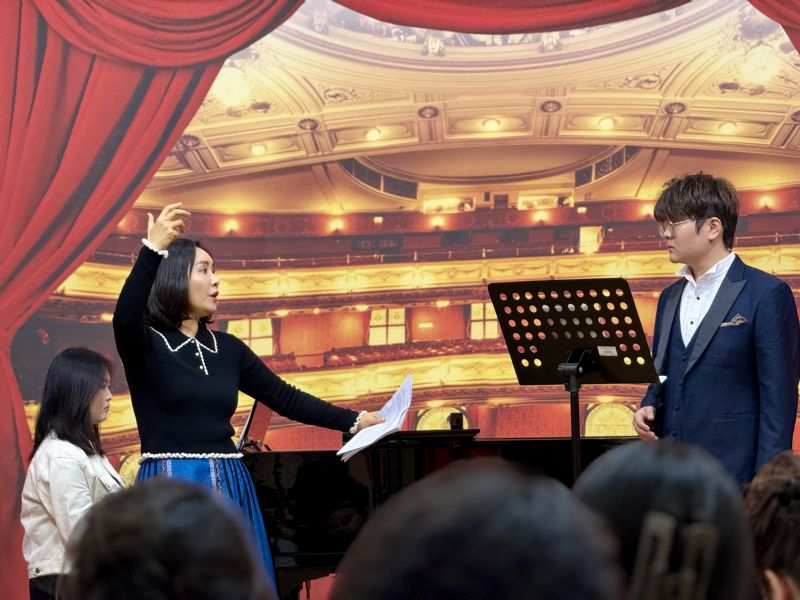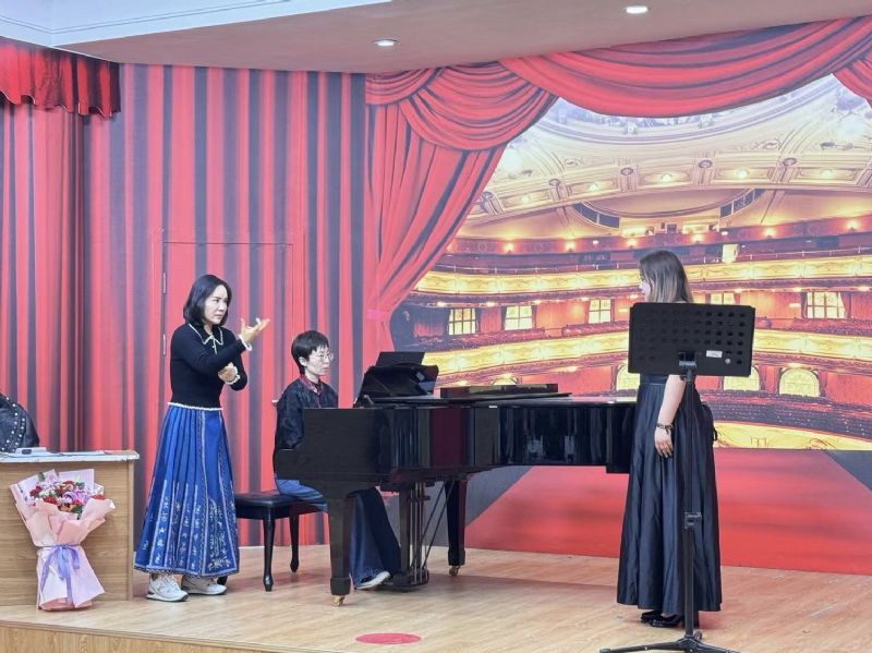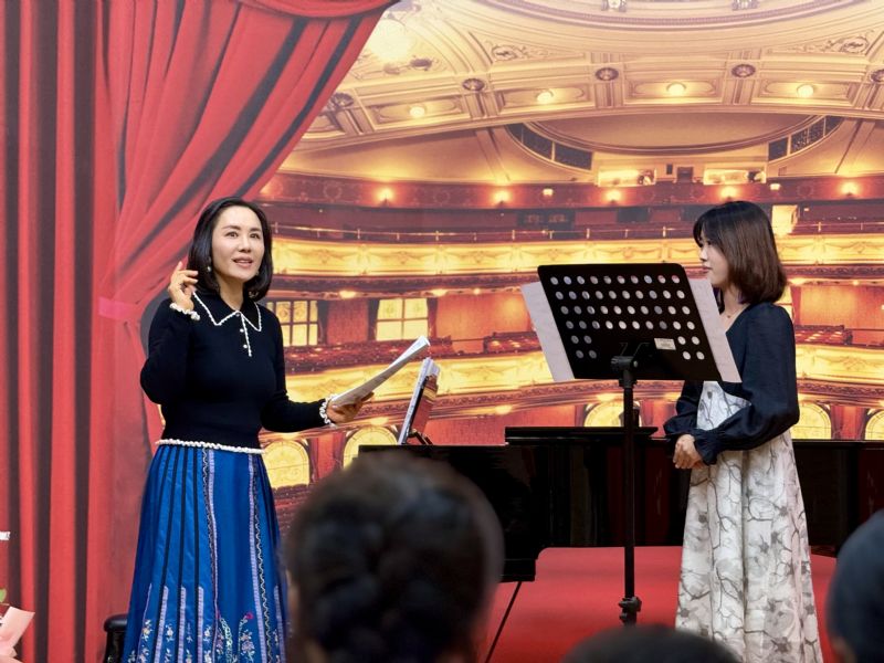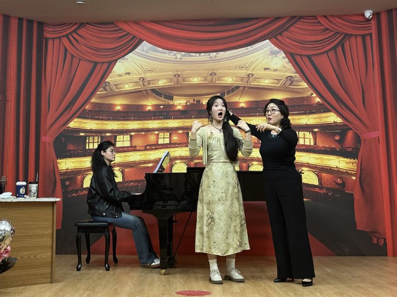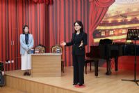 4月11日,朴贞媛教授对我系8名学生进行了指导,她用生动的语言和形象的示范,带领学生们走进艺术的殿堂。她详细讲解了音乐演唱时需要注意的技术技巧,如发声的位置和气息的运用等,强调了探索歌曲的背景、角色的内涵演绎等,引导学生要充分发掘艺术作品的表现力,将歌曲的“灵魂”表现的淋漓尽致。