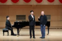 在现场教学中,民族声乐系学生邵佳宁演唱了《长相思·其一》与《青春舞曲》、周建凯演唱了《大江东去》与《手挽手》、李文跃演唱了《走进香巴拉》与《阿拉木汗》、黄瑶婷演唱了《鸟儿在风中歌唱》。曲学选教授对同学们的演唱给予充分的肯定与鼓励,并针对每位同学的演唱特点、作品内涵提出了许多有益的建议。