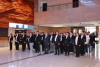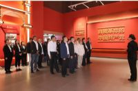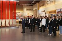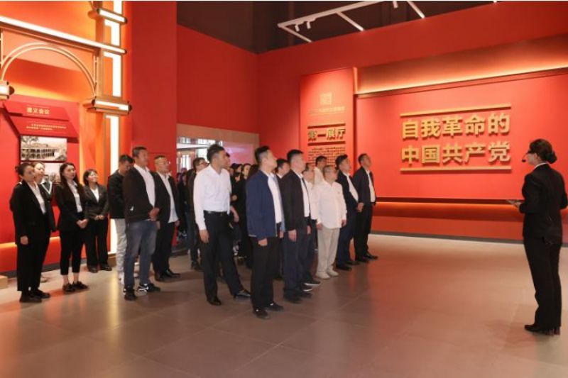 在展馆序厅,机关党委书记耿岩带领全体党员面向鲜红的党旗,整齐列队,庄严肃立,紧握右拳,重温入党誓词。铿锵有力的誓言,在大厅内久久回荡,表达了每一位党员对党的无限忠诚,为党的事业奋斗终身的信念和决心。