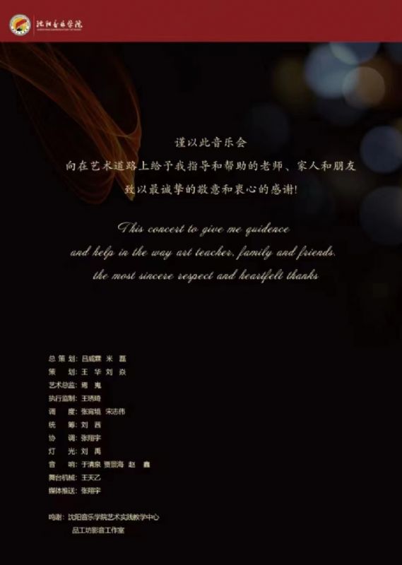 音乐会地点:沈阳音乐学院长青校区音乐剧场