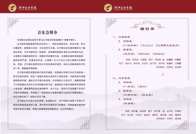 音乐会地点:沈阳音乐学院长青校区第二教学楼15楼演奏厅