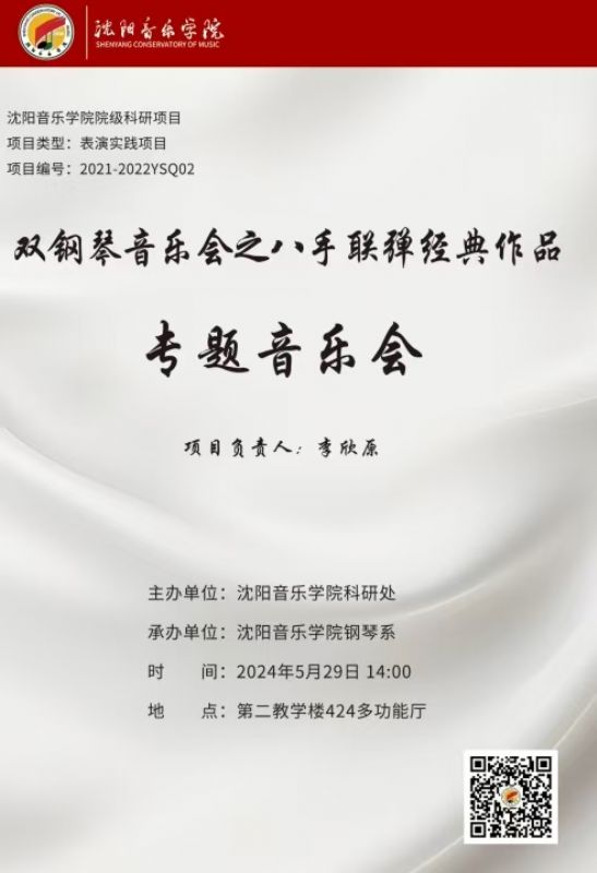 音乐会名称:李欣原科研结题项目——双钢琴之八手联弹经典作品专题音乐会