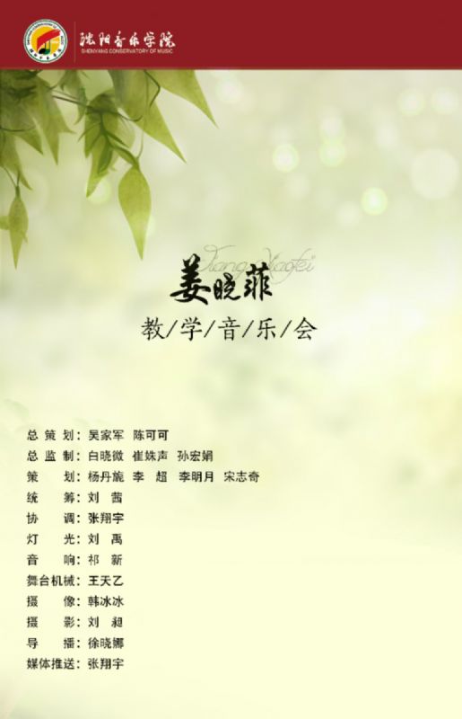 音乐会地点:沈阳音乐学院三好校区音乐厅