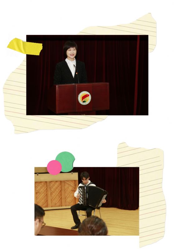 课上,支部党员、副校长张明介绍了歌曲《在北京的金山上》的题材、创作背景以及歌曲所表达的对党和毛主席的无限热爱。键盘学科高一年级吴东奇演奏了具有浓郁的民族特色的手风琴作品《在北京的金山上》;